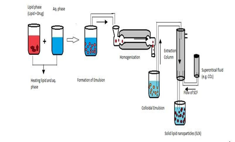 This method stands out as one of the most promising techniques for generating solid nanoparticles, based on the principle that lipid nanoparticles are formed from oil/water emulsions via supercritical fluid extraction (SCF).