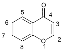 The chromone ring system, 1benzopyran4one, is the core fragment in several flavonoids, such as flavones, flavanols and isoflavones (1). The word chromones is derived from the Greek word chroma, meaning “color”, which indicates that many chromone derivatives exhibit a broad variation of colors. The rigid bicyclic chromone fragment has been classified as a privileged structure in drug discovery, due to its use in a wide variety of pharmacologically active compounds such as anticancer (2), anti-HIV, antibacterial and anti-inflammatory agents (3-12). Several chromone derivatives have also been reported to act as kinase inhibitors, to bind to benzodiazepine receptors and as efficient agents in the treatment of cystic fibrosis (13-15).