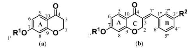 Heterocycles play an important role in the design and discovery of new physiological/pharmacologically active compounds (32). Chemically, chromones (4Hchromen4ones) are heterocyclic compounds with the benzopyrone framework. Molecules containing the chromone or benzopyran one ring have a wide range of biological activities. They have been shown to be tyrosine and protein kinase inhibitors (33), as well as anti-inflammatory (34), antiviral (35), antioxidant (36,37), antihypertensive agents (35).