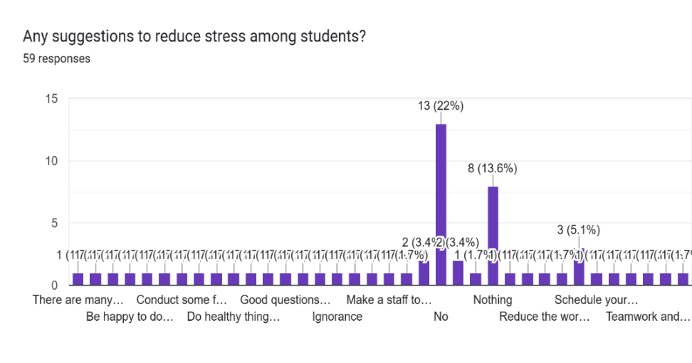 36. Students suggested a range of stress-reduction strategies such as time management, breaks, hobbies, and support systems, showing preference for both behavioral and social coping methods. This aligns with research on stress management among college students, which highlights the effectiveness of multi-faceted approaches including planning, relaxation, social support, and lifestyle changes. Together, these findings suggest that incorporating student-driven strategies into wellness programs may improve relevance and effectiveness.