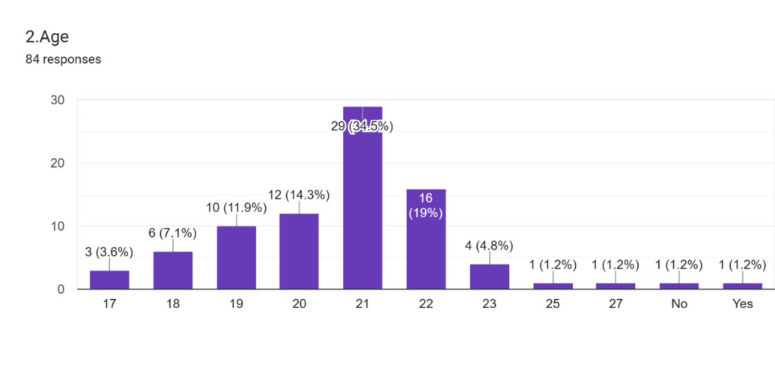 2.The majority of participants belonged to the 21–22 years age group, indicating that students in the early adult academic phase formed the largest proportion of the study population. Similar age-related findings were reported by Beiter et al. (2019) and Son et al. (2020), where students aged 20–22 years experienced higher academic and psychosocial stress.