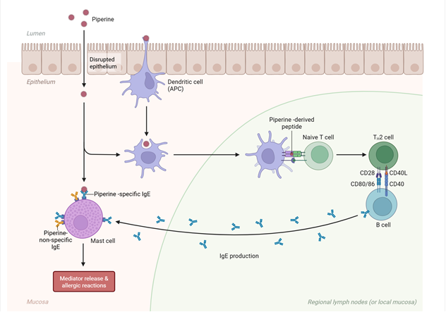 Fig: 3 (a) Immunomodulatory Effects of β-Caryophyllene in Inflammation and Viral Entry Inhibition (b) Mechanism of Piperine- effects on Allergic Reactions