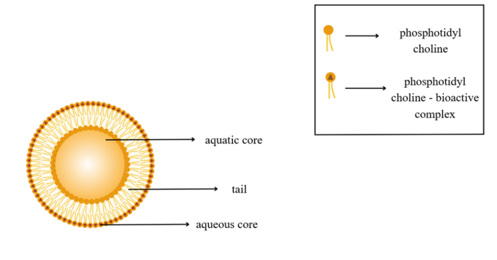Phospholipid head groups must be placed in these complexes. A fatty acid chain encapsulates the polar component in complexes that provide a lipophilic surface. The active component of a liposome can be detected inside a cavity between the many layers of the membrane (5). Particle size of phytosomes can range from 50nm to several hundred micrometers (>100μm).