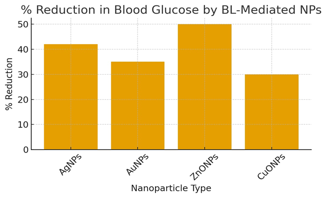 The phytochemical-capped nanoparticles frequently show a higher antioxidant capacity than the extract alone. Lower ROS limits the B-cell damage and which in turn prevents the oxidative pathways that lead to diabetic complications.19