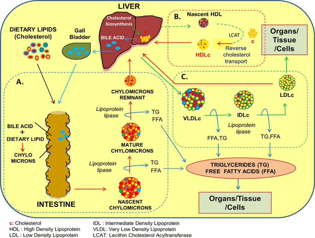 Cholesterol and triglycerides are the major plasma lipids present in the body which are essential for human health. Cholesterol is synthesized by the liver and is important component of the cell membranes serves as precursors to the bile acid and steroid hormones. Lipids are insoluble in water and they must be transported through blood in specialized complexes, called lipoproteins (Tabas 2002)