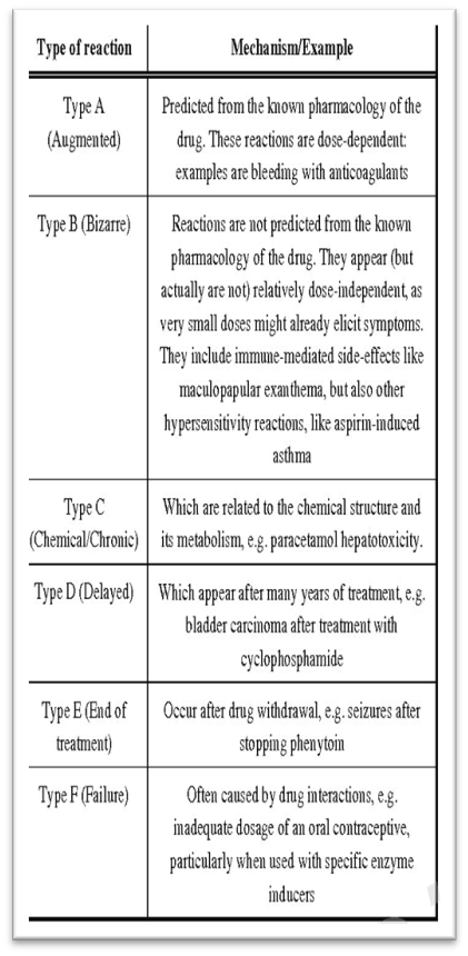 A widely used method to classify ADRs is based on predictability, known as Type A to F classification: