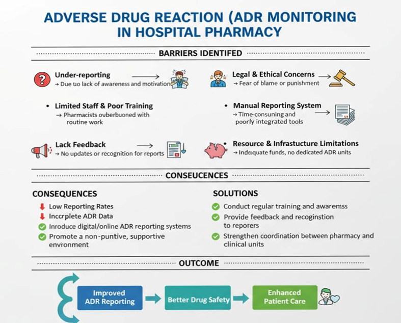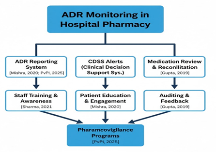Adverse Drug Reactions (ADRs) are a significant concern in hospital settings, and effective monitoring is essential for patient safety. Hospital pharmacies play a central role in detecting, reporting, and preventing ADRs. Improving ADR monitoring requires systematic strategies that involve healthcare professionals, patients, and technological tools.