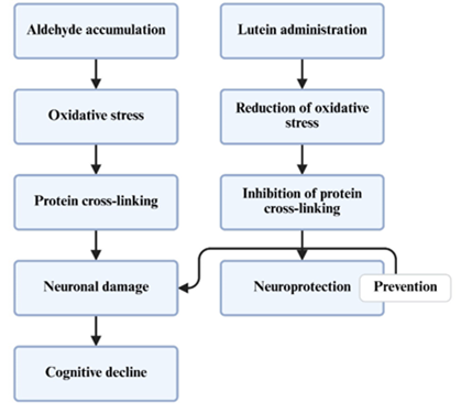 Fig: 1 Schematic overview of the aldehyde-mediated pathogenesis in Alzheimer's disease and the hypothesized therapeutic intervention by lutein