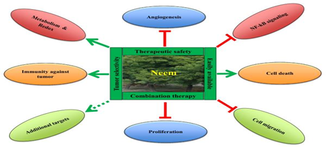 In preclinical studies, it has been shown that compounds derived from neem inhibit pancreatic tumor progression driven by KRAS by suppressing such molecules as HIF-1α, angiogenesis, and cell survival proteins, surviving and XIAP[42].