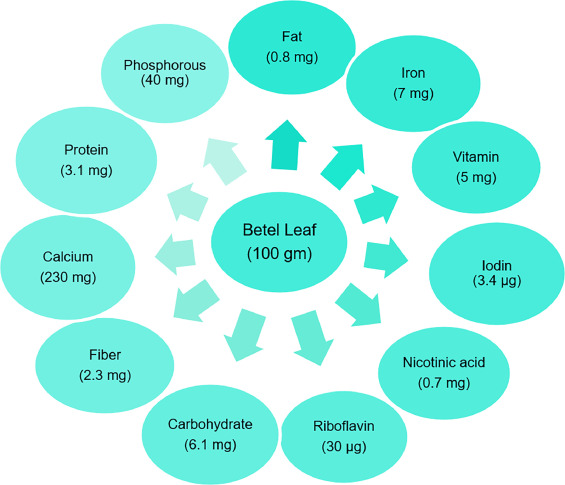 Both as a spice and as a meal, piper betel is utilized. Because of its strong flavor, it is also used in perfumes, oils, anti-infectives, and hallucinogens. Its use against worms has also been demonstrated by recent studies. Normalizing the digestive tract and preserving the digestive system are some other applications. Its light characteristics are the cause of this [42].