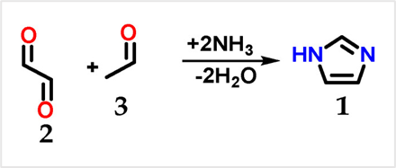 1) Synthesis of imidazole using glyoxal and formaldehyde in presence of ammonia: