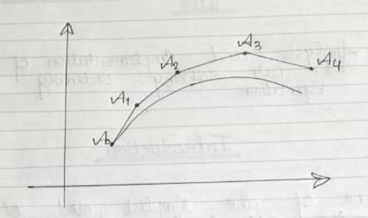 Consider the problem of caculating the step shape Shape of an unknown curve which starts at a given differential equation . Here is a differential equation can be through as a formula by which the slope of the tangent line to the curve Can be computed at any point has been calculated. The idea is that while the curve is initially unknown its starting point , which we denote by Ao , is known. Then from the differential Equations the curve A0 can be Computed, and so the tangent line. Take a small step along that tangent line up to a point A , Along this small step the slope does not change too much . So A, will be close to the curve , if we pretend the A1 is still on the curve the same reasoning as for the point Ao Above can be used . After several steps a polygonal curve (A0, A1 , A2...) is computed . In general this curve does not diverge too for from the original unknown curve and the error between the two curves Can be made small if the step size is small enough and the internal of computation is finite.