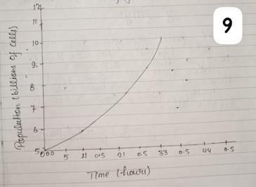 figure 9.1 solution to a simple differential Equation by Euler's Method , As you can see the population doubles in little less than 4 Hours