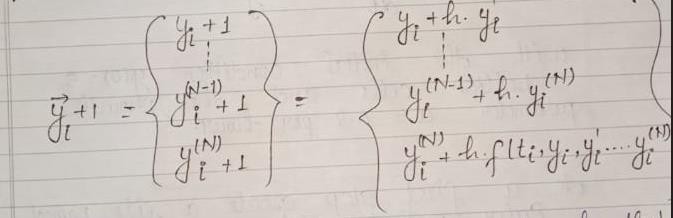 While the Euler method integrates a first order ODE of order N can represented as a system of the first order differential equation . When given the Ode of order N defined as :