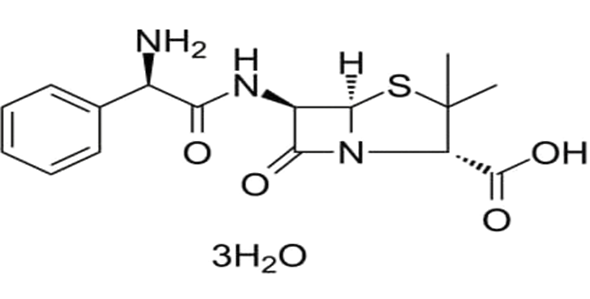 Ampicillin Trihydrate is a semi-synthetic, broad-spectrum β-lactam antibiotic that belongs to the penicillin group. It is extensively used to treat a variety of infections caused by both Gram-positive and Gram-negative bacteria, including Streptococcus, Staphylococcus, Escherichia coli, Haemophilus influenzae, and Neisseria gonorrhoeae. This antibiotic is effective against respiratory tract infections, urinary tract infections, gastrointestinal infections, meningitis, and sepsis. Ampicillin works by inhibiting bacterial cell wall synthesis, ultimately leading to the weakening of the cell wall and the death of the bacterial cell.[4][5][6][7]