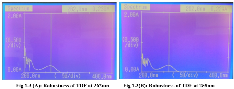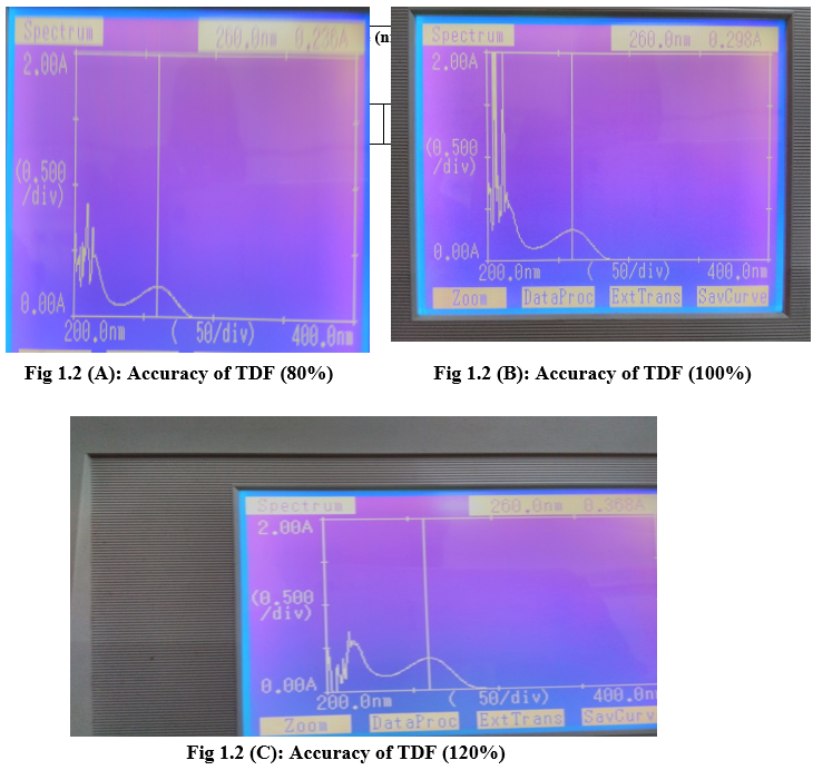 The intra-day and inter-day precision study of Tenofovir Disoproxil Fumarate was carried out. Were %RSD found to be 1.07 and 1.53 respectively.