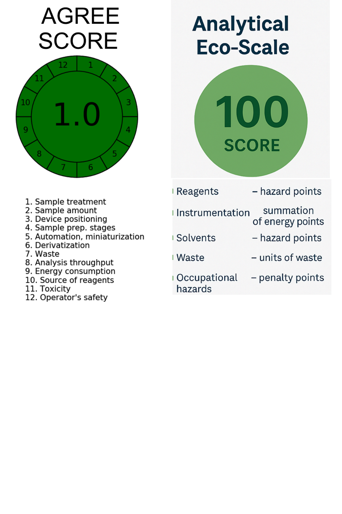 Figure 2: Analytical Eco-Scale and the AGREE (Analytical GREEnness) metric approaches serve as quantitative frameworks