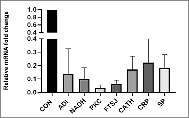 Figure 2: qRT-PCR analysis of mRNA fold changes in Giardia trophozoites treated with ADG.