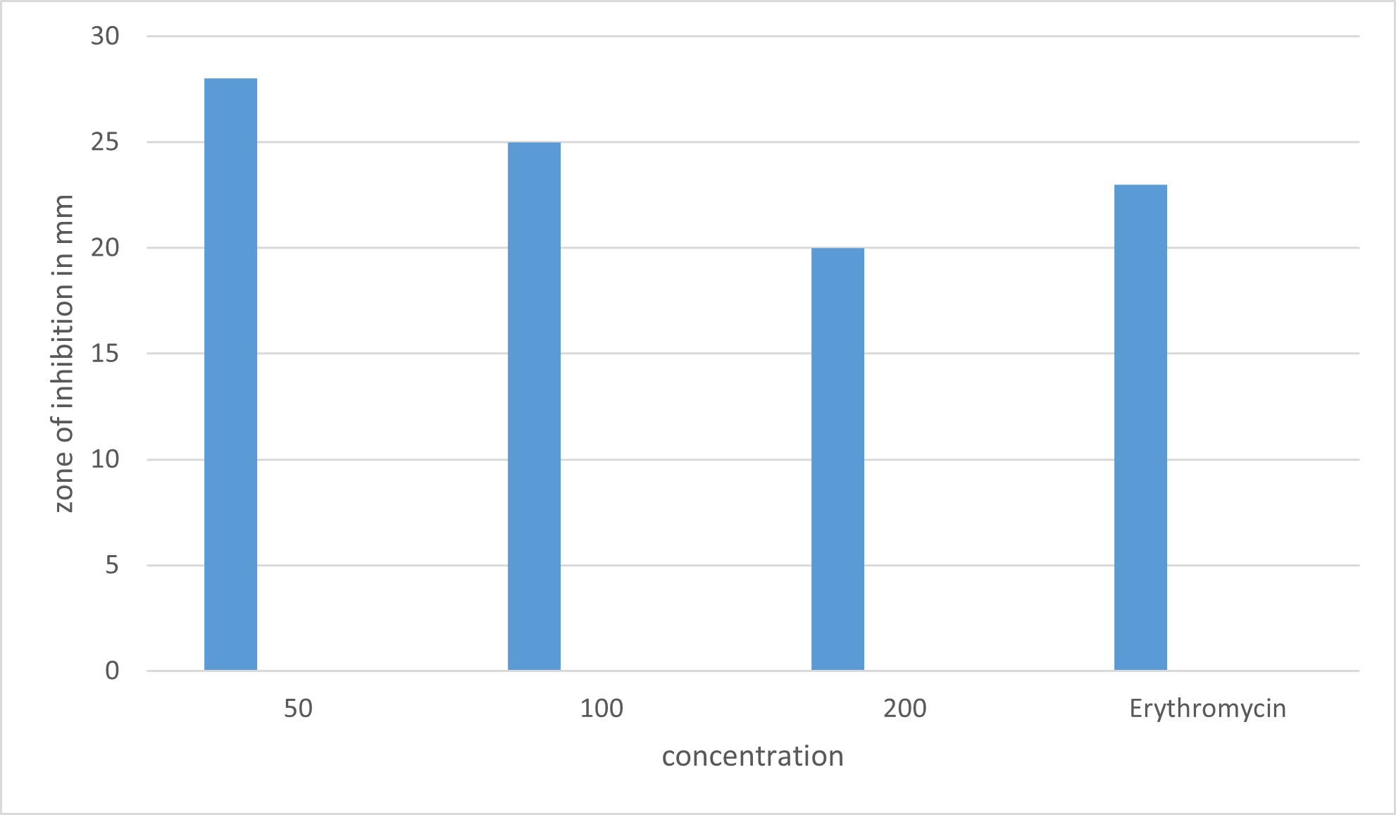 By using the standard techniques outlined in the Manual of Clinical Microbiology of the research of 50 mg/ml, 100 mg/ml, and 200 mg/ml, a natural product diffusion method was employed to test the antibacterial activity.