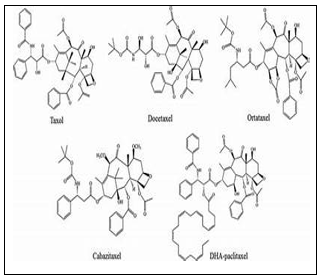 The creation of a class of molecules known as taxanes represents a more recent development in the creation of chemotherapeutic agents derived fromplants.The bark of Taxus brevifolia Nutt. (Taxaceae) is where paclitaxel, commonly known as taxol, was initially isolated.They entered the market in the 1990s after their structure was initially discovered in 1971.While the leaves of T. baccata are used in Ayurveda, with one use in treating “cancer,” several Native American tribes have documented using various parts of T. brevifolia and other Taxus species (e.g., T. canadensis Marshall, T. baccata L.) to treat certain noncancerous conditions.A significant, renewable natural source of this significant class of medications is the readily semi-synthetic conversion of the relatively abundant baccatins to paclitaxel and active paclitaxel analogs, like docetaxel (Taxotere). Paclitaxel is biosynthesised and found in the leaves of several Taxus species.In addition to being effective against Kaposi sarcoma, paclitaxel is used to treat a wide range of malignancies, such as breast, ovarian, and non-smallcell lung cancer.Additionally, it has garnered interest because of its potential for treating rheumatoid arthritis, multiple sclerosis, and psoriasis [38].It was discovered that docetaxel, a semisynthetic derivative of paclitaxel, was more efficient. Patients who are resistant to paclitaxel may be treated with docetaxel.For patients with ovarian, breast, or metastatic cancer, docetaxel and paclitaxel are utilized as first- and secondline treatments, respectively [39].