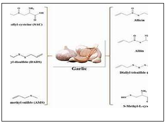 In India, Allium sativum, commonly known as garlic or ginger, is used to treat a wide range of illnesses.Allicin is the main ingredient in raw garlic, and allicin rearranges to produce ajoene.Its cytotoxin action has been evaluated using human primary fibroblasts, a tumorigenic lymphoid cell line obtained from a burkit lymphoma, and a permanent nontumorigenic cell line produced from baby lamster kidney cells.The range of the cytotoxic activity was 250 ug/m l29.In a number of animal models, some organo sulfur compounds found in garlic, such as sallylesteine, have been shown to track the development of chemically produced and transplantable tumors [30].Garlic may have anticancer effects, according to the National Cancer Institute, which is part of the NIH.Garlic (250 mg/kg, p.o., three times a week) significantly inhibited the development of tongue carcinogenesis caused by nitroquinoline1oxide in male wistar rats, as evidenced by the absence of carcinomas during the initiation phase and their decreased occurrence during the postinitiation phase [31].Garlic's sulphydryl components have the power to prevent the development of chemicals that cause cancer.Increased garlic consumption has been linked in a number of population studies to a lower risk of pancreatic, esophageal, colon, stomach, and breast cancers [32].