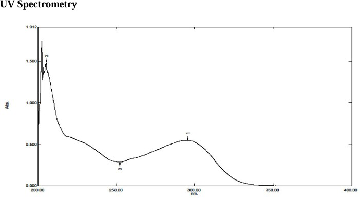 Solution of 10µg/ml in methanol showed a peak at 296 nm with absorbance 0.5650.