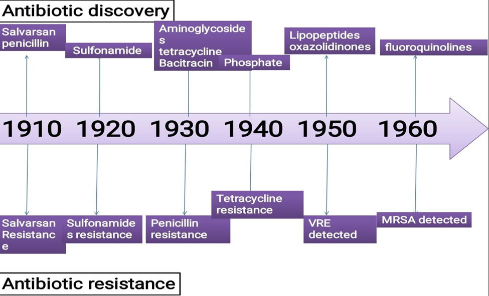 Figure 2. Timeline Of Discovery of Major Antibiotics and Antimicrobial Resistance