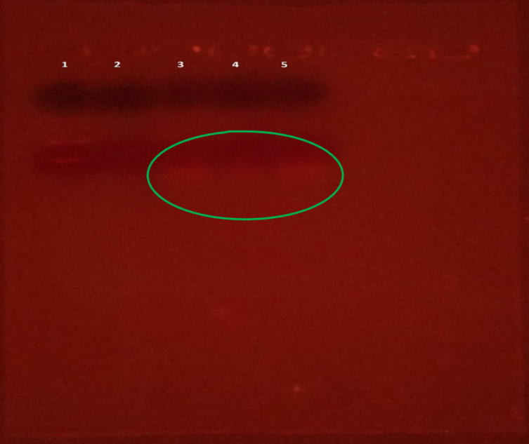 A negative control without any template was used as control to check for any contamination. After PCR reaction was completed, the PCR tubes containing samples were transferred to a ice bucket and from the total volume, 15 µl of each of the sample was loaded onto an 1.2 % agarose electrophoresis gel.