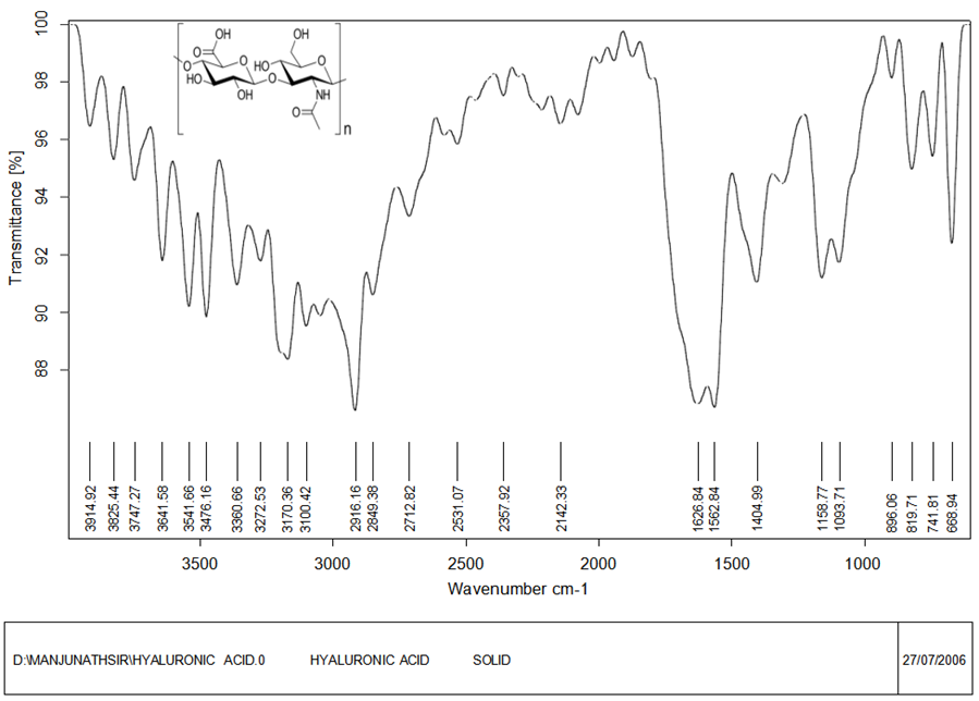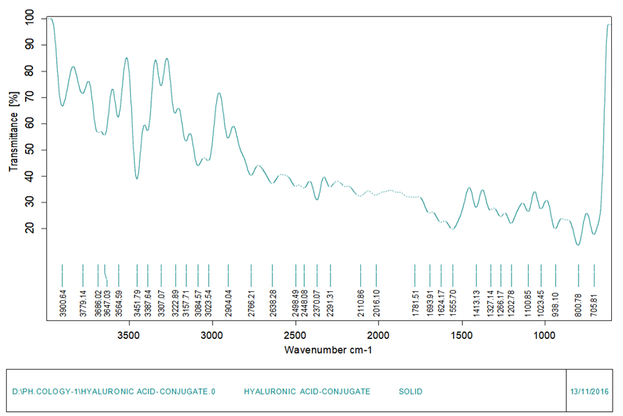 Table 5: Functional groups vibration range of Apocynin-Hyaluronic acid conjugate