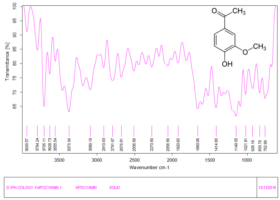 Apocynin (APO), also known as acetovanillone, is a natural organic compound structurally related to vanillin. APO is a methoxy-substituted catechol that is commonly used as an inhibitor of NADPH oxidase. ROS production is also inhibited due to APO's inhibition of NADPH oxidase.[18] APO is a prodrug that is converted by peroxidase-mediated oxidation to a dimer (diapocynin), which is more efficient than APO. APO showed potential antioxidant activities and suppressed the generation of reactive oxygen species that is implicated in lipopolysaccharide-induced acute lung injury. It showed inhibitory effects on pro-inflammatory cytokines and apoptosis pathway. APO has shown potential therapeutic effects in many diseases (diabetic nephropathy, cyclosporine induced nephrotoxicity, arteriosclerosis, and arthritis) by its NADPH oxidase inhibition.[19] The present study was conducted to evaluate the anti-cancer ability of APO-HA conjugate in vitro on HBL-100, MCF-7 cell lines and on EAC cells in mice.