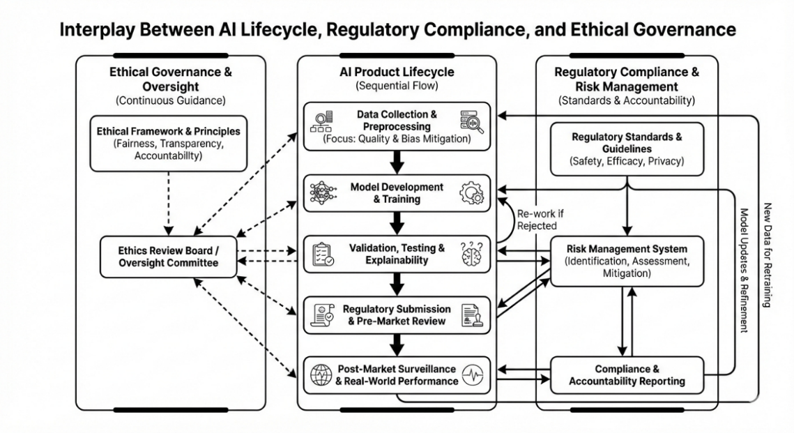 Fig 3: Interplay Between AI Lifecycle, Regulatory Compliance and Ethical Governance