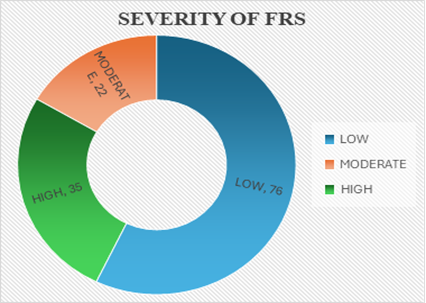 In the present study the distribution of the risk of CVD in out of 133 participants low risk 76 patients (57.1%), moderate risk 22 patients (16.5%), and high risk 35 patients (26.3%) which is similar to the study conducted by Ashit Kumar Paul et.al which shows in which 290 subject participants 61.7% low, 18.6% intermediate and 19.7% high.