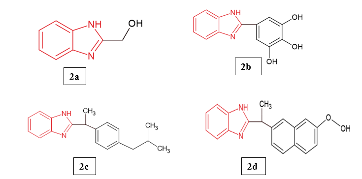 Saikat Kumar Poddar et al. (2025) explored the therapeutic potential of newly synthesized benzimidazole derivatives by designing and obtaining four mono-substituted analogs (2a–2d) in good yields (66–94%). The biological evaluation encompassed in vivo assays for analgesic, anti-inflammatory, and antidiarrheal activities, alongside in silico docking studies against key targets including COX-1, COX-2, and the κ-opioid receptor. Among the compounds, 2d emerged as the most active analgesic, achieving 62.37% writhing inhibition at 50 mg/kg, with 2b (58.98%) and 2c (57.29%) showing moderate efficacy relative to diclofenac sodium (92.54%). In anti-inflammatory testing, 2c and 2d demonstrated remarkable inhibition of paw edema (80.61% and 88.30%, respectively), notably exceeding the standard diclofenac sodium (56.97% in the first hour). For antidiarrheal effects, 2a was the most effective, inhibiting defecation by 66.67% at 50 mg/kg, approaching the activity of loperamide (75.0% at 25 mg/kg), whereas other analogs were less significant. Docking analyses supported the pharmacological findings, with 2d exhibiting the highest binding affinities toward COX-1 (−8.7 kcal/mol) and COX-2 (−8.9 kcal/mol), outperforming diclofenac sodium (−8.2 and −8.4 kcal/mol). The study highlights that substituent bulkiness on the benzimidazole nucleus strongly influences COX enzyme affinity, suggesting that these derivatives act primarily via COX inhibition8.