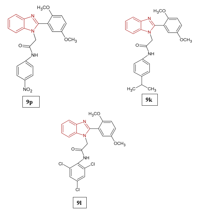 Antimicrobial and antiviral agents play a crucial role in modern medicine, as infectious diseases caused by bacteria, fungi, and viruses remain a major global health concern. The rise of multidrug-resistant pathogens, including Staphylococcus aureus, Escherichia coli, Pseudomonas aeruginosa, and Candida species, has intensified the search for new and more effective antimicrobial therapies17. Antimicrobial agents exert their effects through multiple mechanisms, including the inhibition of cell wall formation, interference with protein or nucleic acid synthesis, and disruption of membrane integrity18. In a similar manner, antiviral drugs act by blocking key steps in the viral life cycle such as attachment, genome replication, protein processing, and viral assembly, thereby suppressing infection19. A wide range of therapeutics, including nucleoside and non-nucleoside analogues, polymerase inhibitors, and protease inhibitors, have been successfully employed in the management of diseases such as HIV, hepatitis B and C, influenza, and more recently, coronavirus infections. Nevertheless, the growing problem of drug-resistant microbes and the emergence of new viral pathogens highlight the urgent need for continued exploration and development of novel antimicrobial and antiviral strategies20. Mohapatra et al. (2025) designed and synthesized 17 benzimidazole-based derivatives to evaluate their potential as NNRTIs for HIV and as antimicrobial agents. Structural modifications at the C-2 and N-1 positions optimized hydrophilic and hydrophobic balance for improved target binding. Biological screening revealed compound 9p as the most potent anti-HIV agent, showing 88.08% inhibition of HIV-1 reverse transcriptase with a docking score of −6.3 kcal/mol, attributed to nitro and chloro substituents on the third phenyl ring. Compound 9k demonstrated strong anti-mycobacterial activity against Mycobacterium smegmatis (MIC 0.195 μg/mL) and broad-spectrum antibacterial activity against S. aureus, B. subtilis, E. coli, and P. aeruginosa (MIC 3.125–6.25 μg/mL), due to nitro and methoxy substitutions. Additionally, compound 9l showed the best antifungal activity, with MICs of 6.25 μg/mL against C. albicans and 3.125 μg/mL against A. niger21.