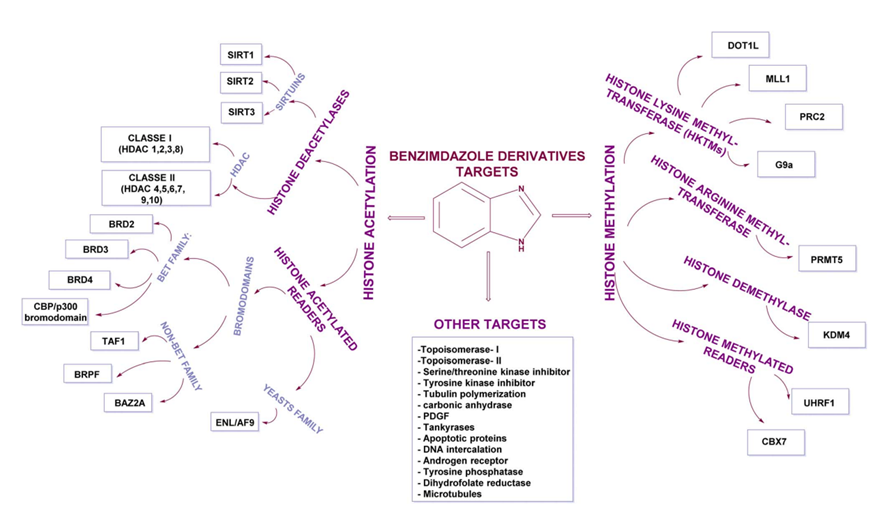Figure 1: Representation of various targets of 1H-benzimidazolederivatives having anticancer effects10.