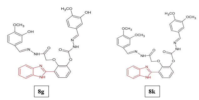 Hamid Ullah et al. investigated the anti-diabetic potential of newly synthesized benzimidazole-based bis-Schiff base derivatives, with emphasis on their in vitro inhibitory activity against α-amylase and α-glucosidase. The results revealed that seven compounds showed remarkable enzyme inhibition, with IC?? values between 2.84 ± 0.12 and 16.70 ± 1.23 µM, surpassing the standard drug acarbose (IC?? = 16.08 ± 0.18 and 16.15 ± 0.04 µM). Among them, compound 8k was identified as the most effective dual inhibitor of both α-glucosidase and α-amylase, displaying IC?? values of 2.84 ± 0.12 µM and 3.16 ± 0.05 µM, respectively. Compound 8g also exhibited notable α-glucosidase inhibition (IC?? = 6.94 ± 0.07 µM). Interestingly, these derivatives showed considerably higher plasma protein binding (98.347–98.894%) compared to acarbose (27.668%), which may lower the free drug fraction and thus affect in vivo efficacy. Structure–activity relationship (SAR) studies highlighted that electron-donating groups like methoxy and hydroxyl, particularly at the meta and para positions of the benzene ring, played a key role in enhancing enzyme inhibitory activity16.