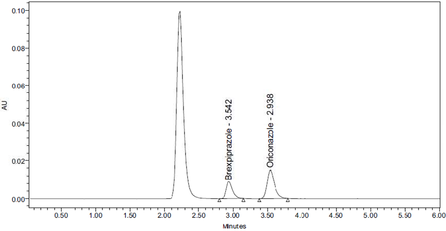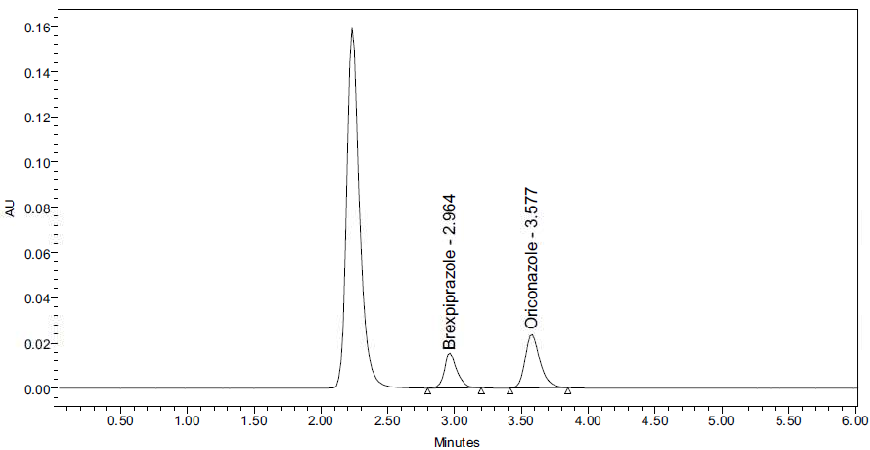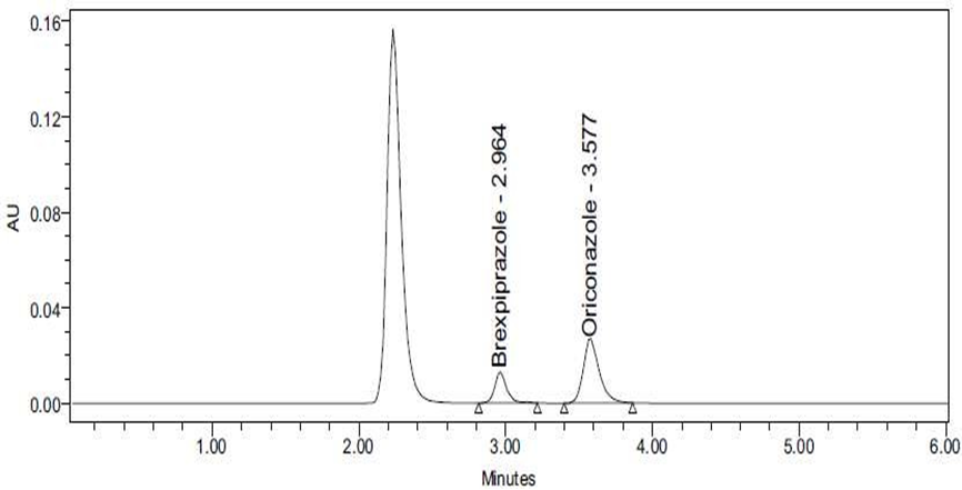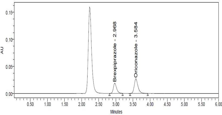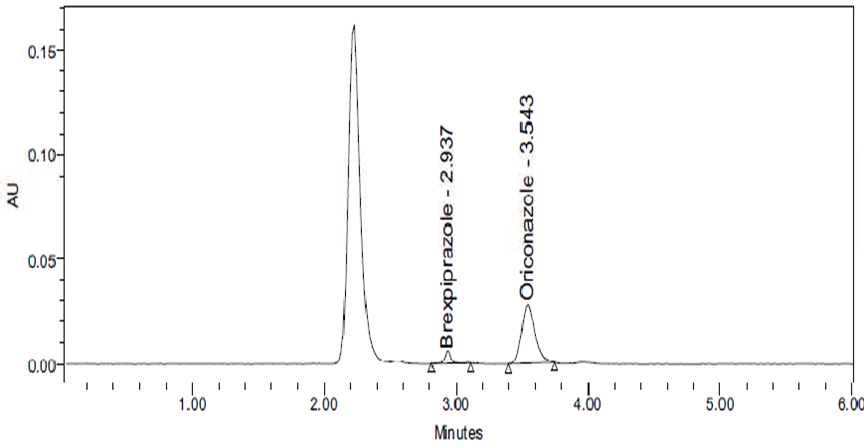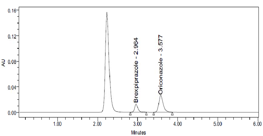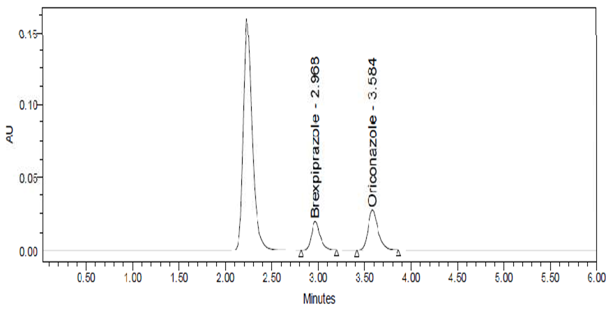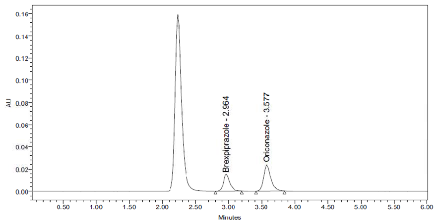 Brexpiprazole is a BCS class II type called (7-{4-[4- (1-benzothiophen-4-yl) piperazin-1-yl] butoxy} quinoline2(1H)-one is a new medication in psychiatric 1,2 and also in the treatment of depression which has a high affinity for monoamine neurotransmitters like serotonin, dopamine, and noradrenaline receptors, For other major depressive disorder like Alzheimer’s disease, schizophrenia 3,4 , neurobehavioral disorders 5 , combat disorder, bipolar disorder treatment, adjunctive treatment it is mostly used. It has more potency than other antipsychotic drugs with little aqueous solubility and substantial intestinal permeability. 6,7 Brexpiprazole was originally approved in the United States in July 2015 for use as an adjunctive action for major depressive disorder (MDD) and schizophrenia. 9 Antipsychotics are first and second-generation drugs that are mainly active as D2 receptor antagonists. 10,11 Brexpiprazole acts as a partial agonist of the serotonin 5-HT1A receptor and the dopamine D2 and D3 receptors. Partial agonists have both blocking properties and stimulating properties at the receptor they bind to. The ratio of blocking activity to stimulating activity determines a portion of its clinical effects. . 12 brexpiprazole is a substrate of CYP2D6 and CYP3A4, like its predecessor aripiprazole. A simple, accurate, and precise method for the quantification of brexpiprazole in human plasma was developed by using the RP-HPLC (Reverse phase-High performance Liquid Chromatographic) technology to construct an internal standard of oriconazole.
