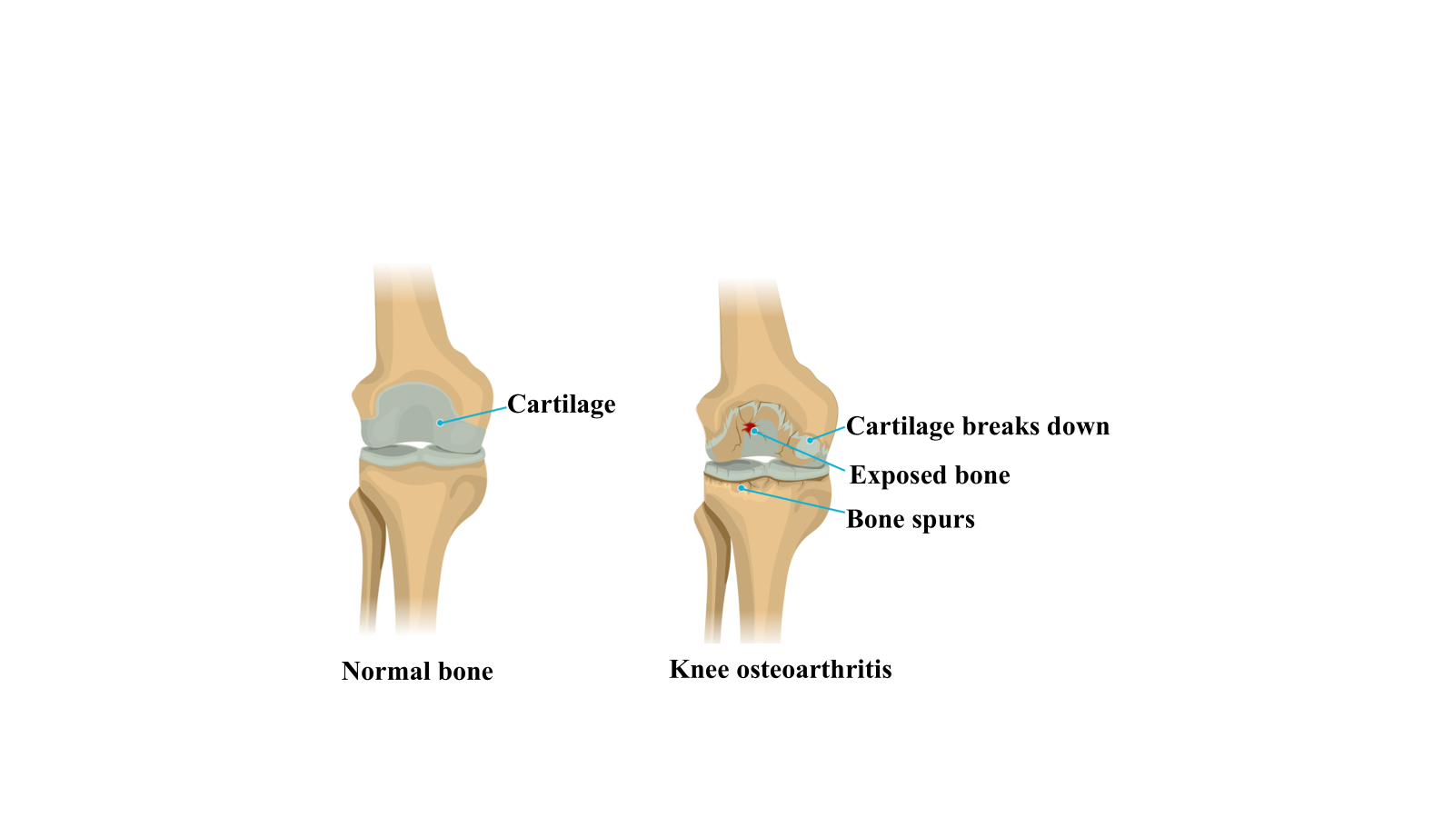 Figure 1: Structure of normal knee joint (L) vs osteoarthritis knee joint (R)6