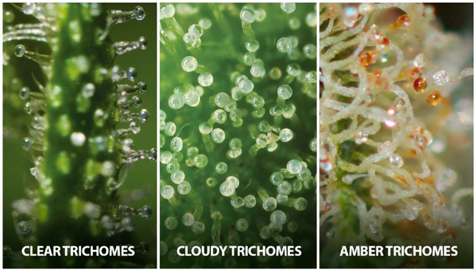 Visual inspection is needed to determine the readiness of cannabis for harvest (when trichomes turn from clear to cloudy or amber (Fig. 2.2) then it indicates that the plant is nearing its peak potency)[28]. Plant harvesting is carried out in December and January, commencing when the lower leaves fall off and the upper parts of the inflorescence turn yellow[29]. Too late or too early harvesting can significantly affect the yield of delta-9-tetrahydrocannabinol. The level of delta-9-tetrahydrocannabinol peaks before noon and declines gradually so that it must be collected in the morning. When the inflorescence reaches the appropriate stage, it is clipped, then it is spread out in collecting yards in rings and furrows and compressed by treading[30]. Cannabis can be harvested either by manual or machine. The harvested materials are then gathered, formed into 60 – 90 high circular mounds, and compressed for a few days. It usually takes 7 to 14 days for cannabis to dry out thoroughly. After drying, there are chemical reactions that cause the heaps to crumble, turn over, and spread out into thick layers[31].