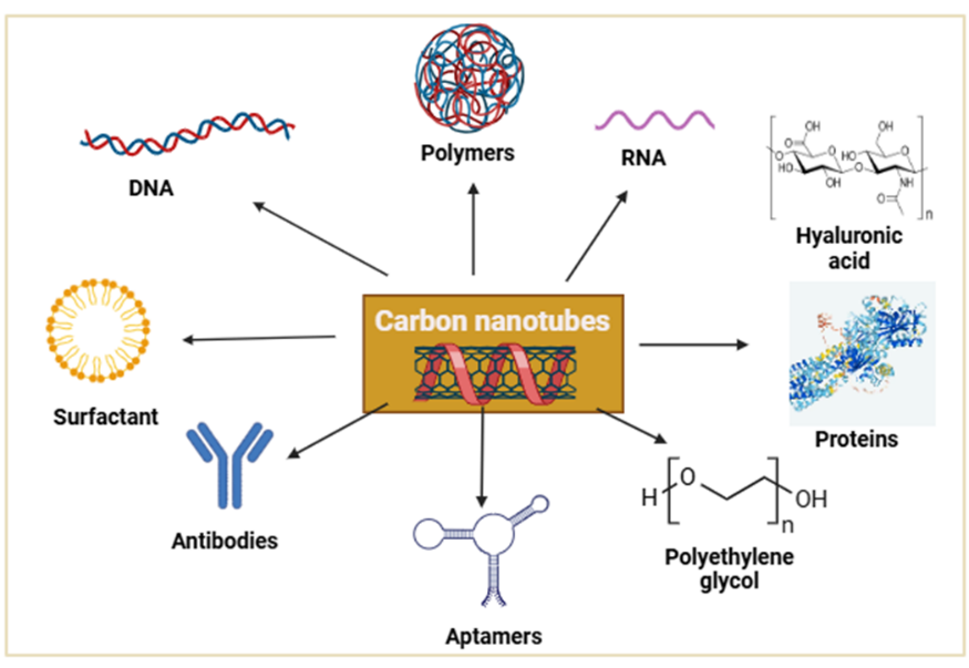 Functionalized CNTs, such as WTxCNTs, are modified to be soluble in water, which is decisive for improving their biocompatibility and reducing toxicity in drug delivery application.[25]