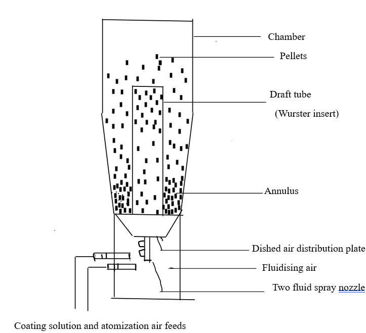 When a regulated release of active ingredients is necessary, this procedure is employed. By using less coating material, the Wurster coating process completely seals the surface. When the spray nozzle is placed into the base plate, a spray pattern is produced simultaneously with the air feed. The particles to be coated are fed through the spray cone while being accelerated in the wurster tube using a base plate with various perforations and a wurster cylinder. The particles dry as they ascend and return to the base plate outside the wurster tube. They are directed from the exterior back into the tube's interior, where the spray accelerates them once more to create an extremely even layer off.