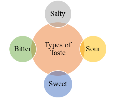 Taste and Flavors: Physiologically, taste is a sensory response resulting from a chemical stimulation of the taste buds on the tongue. There are four basic types of taste;