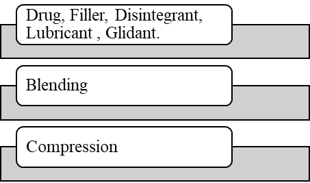 Direct Compression: (20) The term direct compression is used to define the process by which tablets are compressed directly from powder blends of active ingredient and excipients, which flow uniformly in the dies & forms a film compact.
