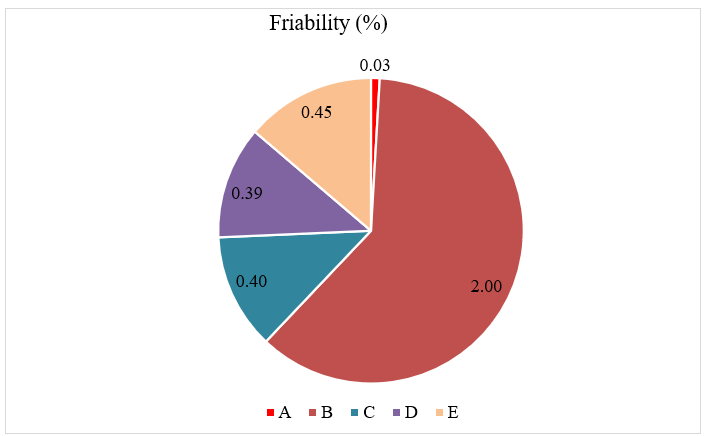 Figure 3. Percentage (%) Friability. Samples A to E.