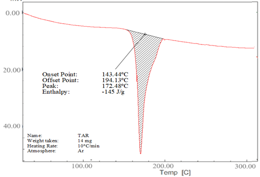 Figure 4. (a) DSC thermogram of lopinavir, (b) tartaric acid and (c) co-crystal L5