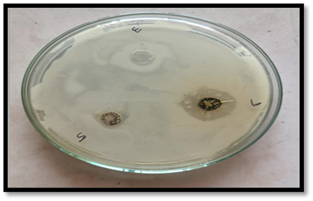 Micropipettes were used to pour test samples gel with a concentration of 50 µg/ml into the appropriate well, and another well-marketed gel was taken. Petri dishes and inoculated plates were kept at room temperature in triplicate. For seven days, the petri dish was incubated at the fungal temperature to allow the sample to diffuse. The ZOI's diameter was measured in millimeters.