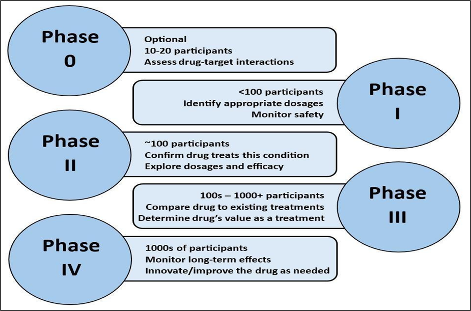 The four stages of a drug approval process are: