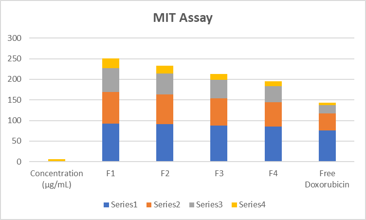 Cytotoxicity was evaluated using an MTT assay on cancer cell lines to assess the effectiveness of the polymeric formulations in inhibiting cell growth. The results demonstrated that polymeric formulations provided controlled cytotoxicity, avoiding the rapid and aggressive toxicity associated with free doxorubicin.