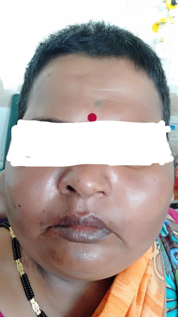 Upon further inquiry, her attenders revealed that she had been suffering from bilateral knee pain and had been under treatment by a local RMP (Registered Medical Practitioner). She had been taking Tab. Dexamethasone 0.5 mg once daily and Tab. Diclofenac sodium 50 mg twice daily for the past three years. Routine laboratory investigations were advised, including CBC, HIV, CRP, HBsAg, LFT, RFT, serum electrolytes, stool culture, blood culture, procalcitonin test, and serum cortisol levels. Radiological investigations included a chest X-ray, abdominal and pelvic ultrasound (USG), and a CT scan of the brain.