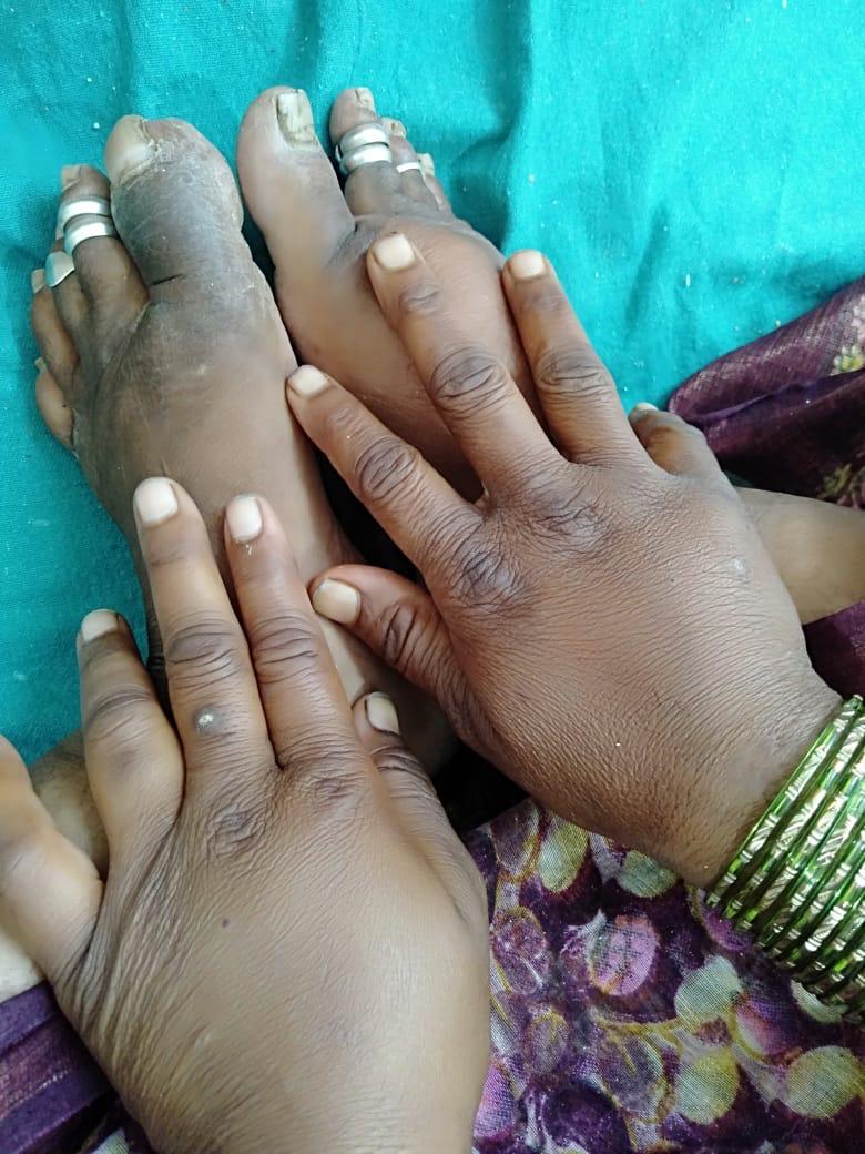Figure B: Swelling of upper and lower limbs indicating generalized fluid retention.
